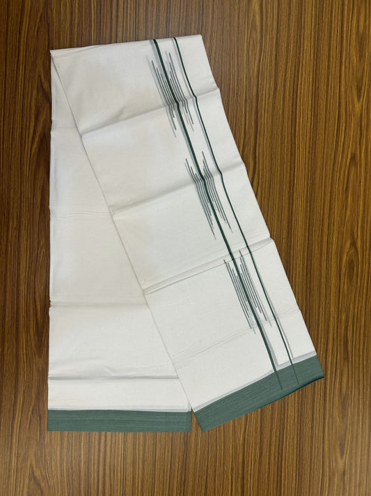 20% Discount ! Kaitharikada Balaramapuram 100% Cotton Pure White Double Mundu/Dothi - 100x80 - 1.5 inch Olive Green Stripes Design Kara 3.80 mtr (8 muzham) - 17 KK5319 THI