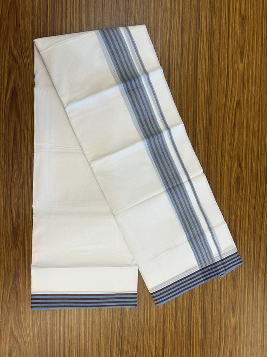 20% Discount ! Kaitharikada Balaramapuram 100% Cotton Pure White Double Mundu/Dothi - 100x80 - 1.5 inch Ash Blue Stripes Design Kara 3.80 mtr (8 muzham) - 11 KK5319 THI