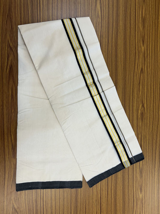 25% Discount ! Kaitharikada Handloom Millpaav Balaramapuram - 100% Pure Cotton Off White - (Unbleached) Double Mundu/Dhoti - 80x90 - 1.75 inch Gold Kasav & Silver Kasav Black Striped Kara 4 mtr (8.5 Muzham) - 1 KK5320 RAM