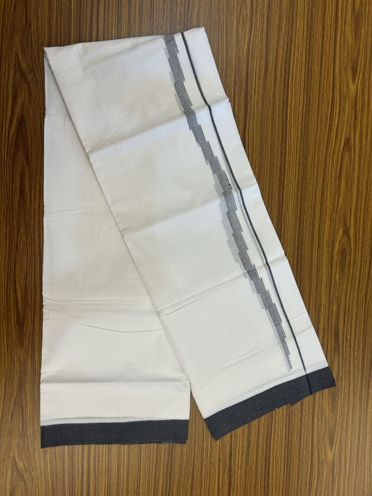 25% Discount ! Kaitharikada Handloom Millpaav Balaramapuram - 100% Pure Cotton Off White - (Unbleached) Double Mundu/Dhoti - 80x90 - 1.75 inch Gold Kasav & Silver Kasav Black Striped Kara 4 mtr (8.5 Muzham) - 5 KK5320 RAM