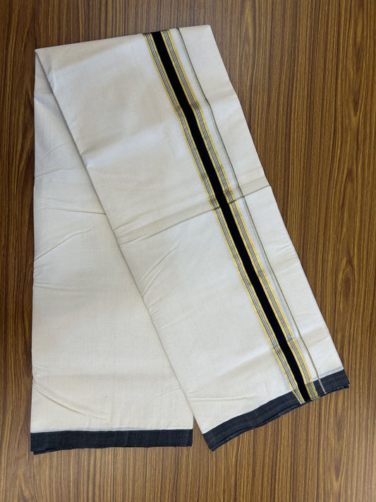 25% Discount ! Kaitharikada Handloom Millpaav Balaramapuram - 100% Pure Cotton Off White - (Unbleached) Double Mundu/Dhoti - 80x90 - 1.75 inch Gold Kasav & Silver Kasav Black Striped Kara 4 mtr (8.5 Muzham) - 3 KK5320 RAM