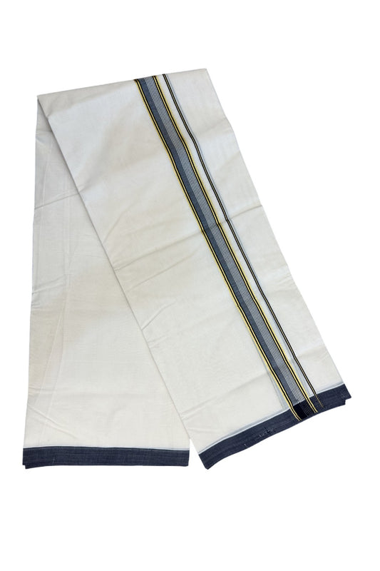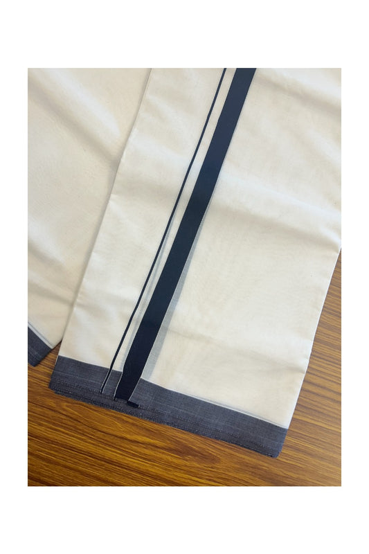 SHORT DHOTI SPECIAL! Kaitharikada.com 30% DISCOUNT! KaithariKada Balaramapuram 100% Cotton Off white (Unbleached) Double Mundu/Dhoti-100x100 - 0.75 inch Kara & 46 inches Height Navy Blue Kara- 1KK5166ASH