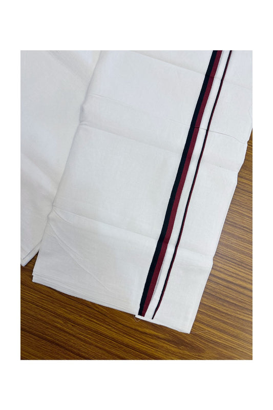 Dmk Veshti - 20% Discount ! KaithariKada Balaramapuram 100% Cotton Single Pure White Mundu/Dhoti- 100X100 - 2 inch Maroon & Black Kara (2 meter /4 muzham) - 5 KK5296 ASH