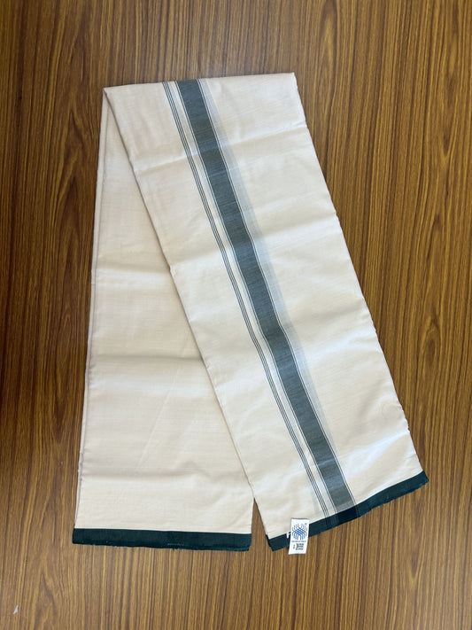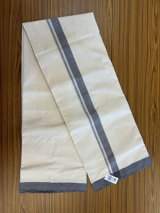 Kerala Handloom - Signature Kaitharikada - Government Sealed Hallmarked-100% Pure Cotton! (2/120sX100) Twisted Thread- Off White Double Mundu/Dhoti - 1.25 inch Black Shaded Striped Kara 4 mtr (8.5 muzham) - 19 KK5331 KAL