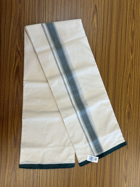 Kerala Handloom - Signature Kaitharikada - Government Sealed Hallmarked-100% Pure Cotton! (2/120X2/160) Twisted Thread- Off White Double Mundu/Dhoti - 1.25 inch Green Striped Kara 4 mtr (8.5 muzham) - 14 KK5331 KAL