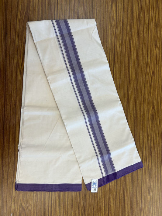 Kerala Handloom - Signature Kaitharikada - Government Sealed Hallmarked- 100% Pure Cotton! (2/120X2/160) Twisted Thread- Off White Double Mundu/Dhoti - 1.75 inch Violet Striped Kara 4 mtr (8.5 muzham) - 17 KK5331 KAL