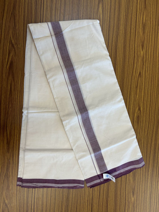 Kerala Handloom - Signature Kaitharikada - Government Sealed Hallmarked-100% Pure Cotton! (2/120X2/160) Twisted Thread- Off White Double Mundu/Dhoti - 1.5 inch Violet Shaded Striped Kara 4 mtr (8.5 muzham) - 21 KK5331 KAL