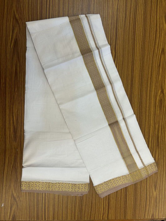 20% Discount ! KaithariKada Balaramapuram 100% Pure Cotton Double Off White (Unbleached) Mundu/Dhoti - 100x80 - 1.25 inch Puliyilakkara Gold Kasav & Peach Brown Jacquard Design Chutty kara (8.5 Muzham) - 16 KK5327 CJT