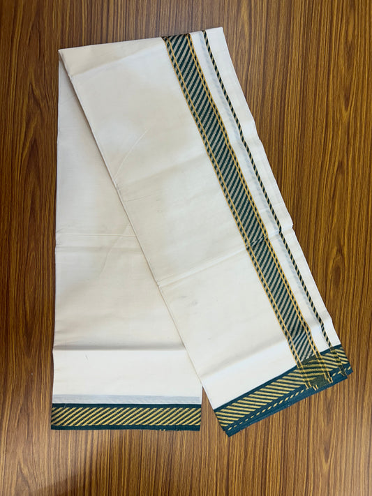 20% Discount ! KaithariKada Balaramapuram 100% Pure Cotton Single Off White Mundu/Dhoti - 30X70 - 1.5 inch Gold Kasav & Green Jacquard Design kara 2 mtr (4 Muzham) - 4 KK5327 CJT