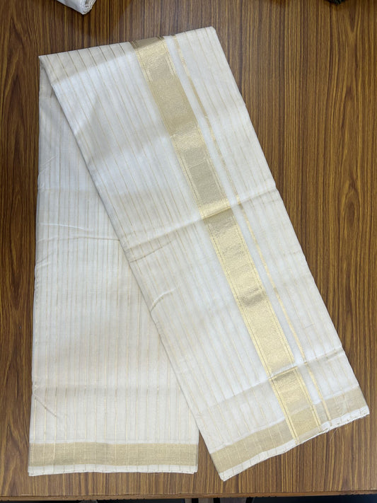 25% Discount ! KaithariKada Handloom Unakkupaav Kerala Handloom - Pure Cotton Off White - (Unbleached) Double Mundu/Dhoti - (100X80) - 7 inch Gold Kasav Striped & Half Tissue Kara - 4 mtr (8.5 Muzham) - 4 KK5342 ABH