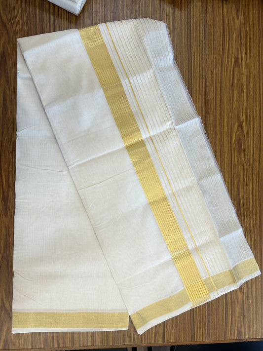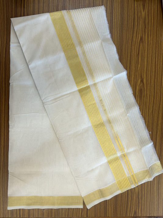 25% Discount ! KaithariKada Handloom Unakkupaav Kerala Handloom - Pure Cotton Off White - (Unbleached) Double Mundu/Dhoti - (100X80) - 7 inch Puliyilakkara Gold Kasav Striped Chutty & Half Striped Kara - 4 mtr (8.5 Muzham) - 7 KK5342 ABH