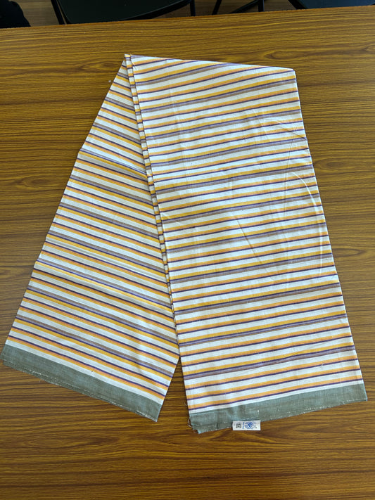 Handloom Bedsheet - Pure Cotton - 10% Discount !! Kaitharikada - Yellow & Violet Striped Colour Body - 5 KK3000 KAL
