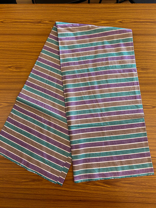 Handloom Bedsheet - Pure Cotton - 10% Discount !! Kaitharikada - Green Brown & Violet Striped Colour Body - 4 KK3000 KAL