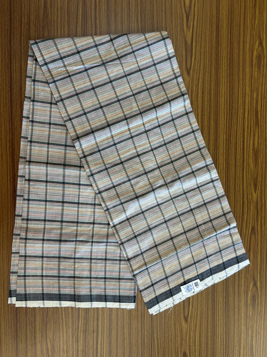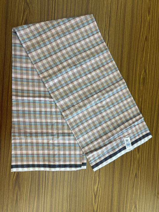 Kerala Handloom - Signature Kaitharikada - Government Sealed Hallmarked - 100% Pure Cotton - 2/60X40s Twisted Thread - Handloom Single Mundu/Dhoti - Light Peach & Multi colour Check Body - Above 2 mtr - 66 KK8046 KAL