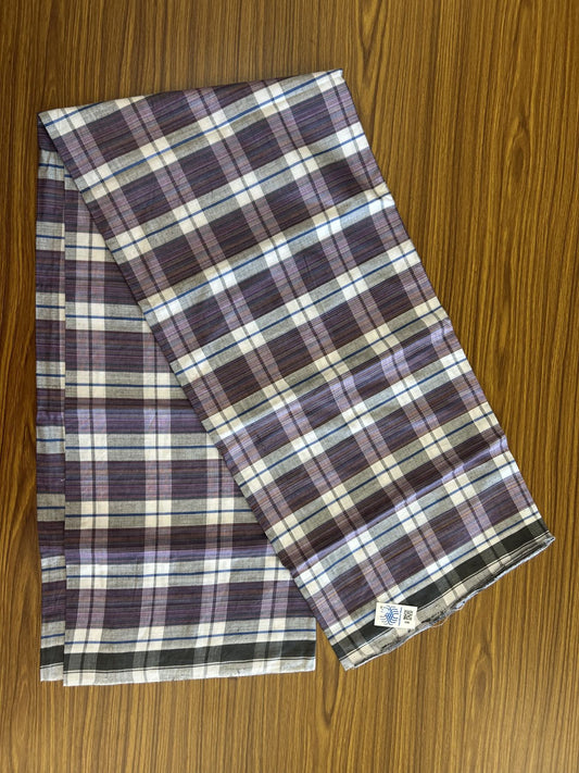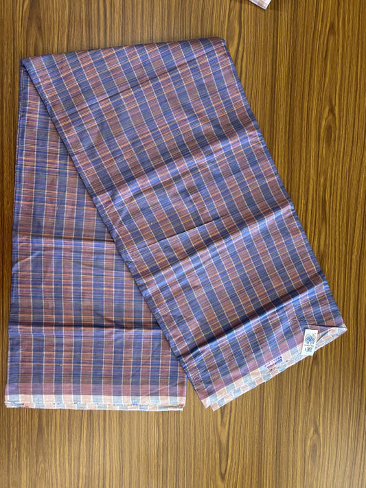 Kerala Handloom - Signature Kaitharikada - Government Sealed Hallmarked - 100% Pure Cotton - 2/60X40s Twisted Thread - Handloom Single Mundu/Dhoti - Purple & Multi colour check Body - 2.16 mtr - 71 KK8046 KAL