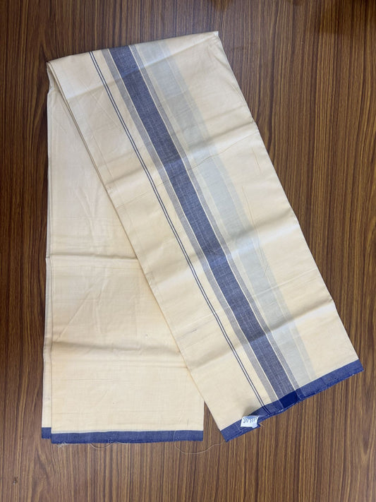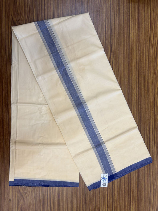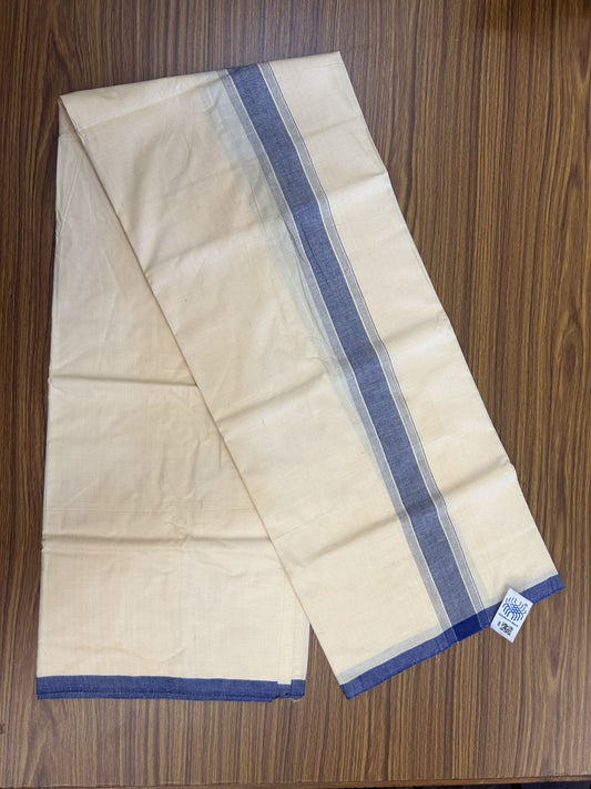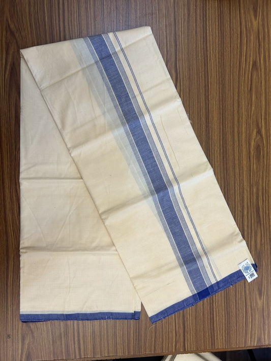 Kannur Kavi Dhoti - KaithariKada Balaramapuram Handloom Single Mundu/Dhoti - 100% Pure Cotton 2/80x2/80s Thread - Kannur Light Yellow colour Body 2 inch Blue Striped Kara - 6KK5333 KAL