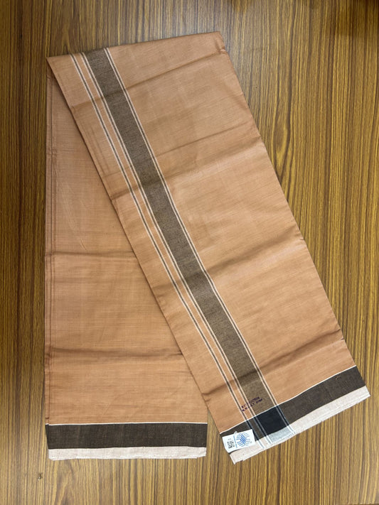 Kerala Handloom - Signature Kaitharikada - Government Sealed Hallmarked - 100% Pure Cotton 2/60x40s Thread - Single Mundu / Dhoti - 1.5 inch Black Shaded Striped Kara with Kavi colour Body - 4 KK5333 KAL