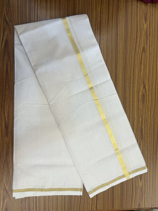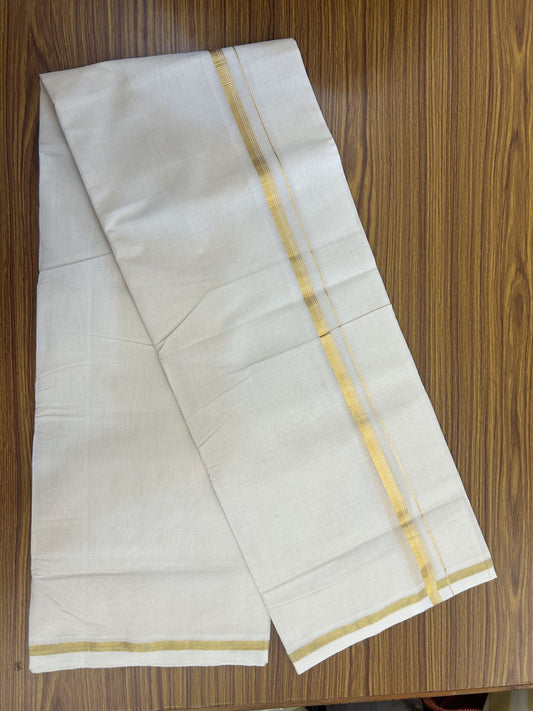 25% Discount!! KaithariKada Handloom Millpaav Balaramapuram - 100% Pure Cotton Off White Double - (Unbleached) Mundu/Dothi - 80x90 - 1.5 cm Gold Kasav Stripes kara 4mtr (8.5 muzham) - 3 KK5332 RAM