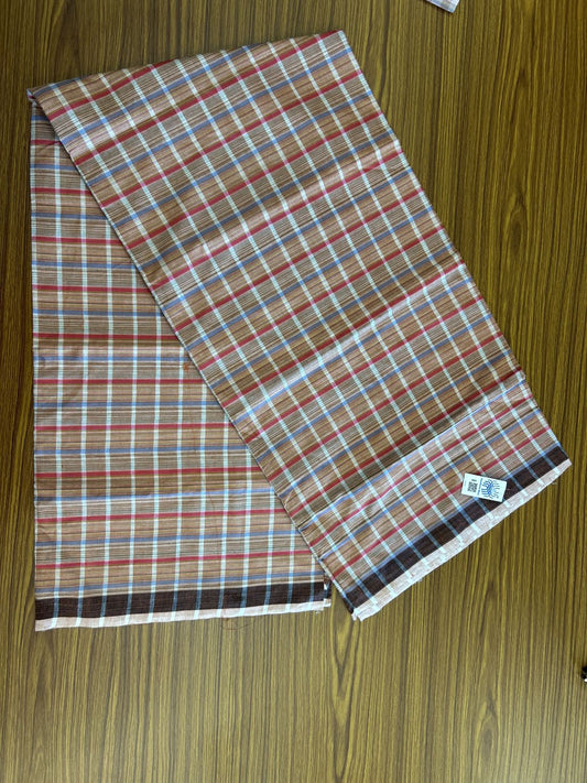Kerala Handloom - Signature Kaitharikada - Government Sealed Hallmarked - 100% Pure Cotton - 2/60X40s Twisted Thread - Handloom Single Mundu/Dhoti - Brown Check Body - 2.16 mtr - 61 KK8046 KAL