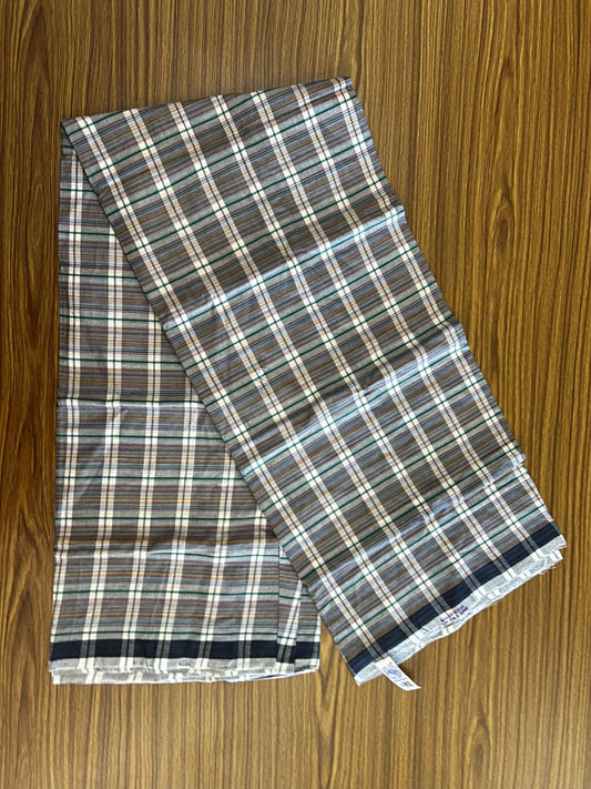 Kerala Handloom - Signature Kaitharikada - Government Sealed Hallmarked - 100% Pure Cotton - 2/60X40s Twisted Thread - Handloom Single Mundu/Dhoti - Green & Multi colour check Body - 2.22 mtr - 68 KK8046 KAL