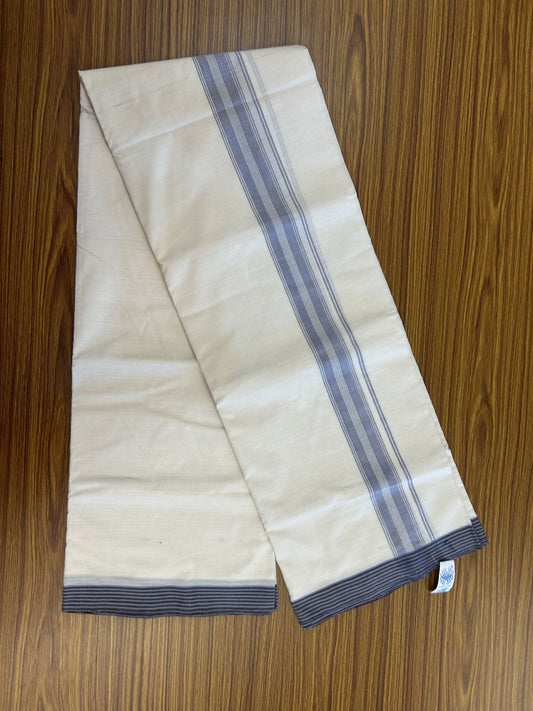 Kerala Handloom - Signature Kaitharikada - Government Sealed Hallmarked-100% Pure Cotton! (2/120sX100) Twisted Thread- Off White Double Mundu/Dhoti - 1.5 inch Light Lavender Blue Shaded Striped Kara 4 mtr (8.5 muzham) - 24 KK5331 KAL