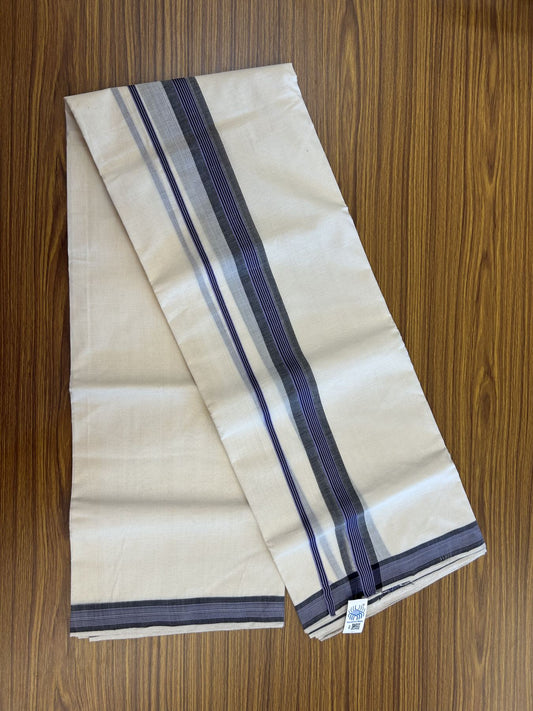 Kerala Handloom - Signature Kaitharikada - Government Sealed Hallmarked-100% Pure Cotton! (2/120sX100) Twisted Thread- Off White Double Mundu/Dhoti - 1.25 inch Lavender Blue Shaded Striped Kara 4 mtr (8.5 muzham) - 22 KK5331 KAL