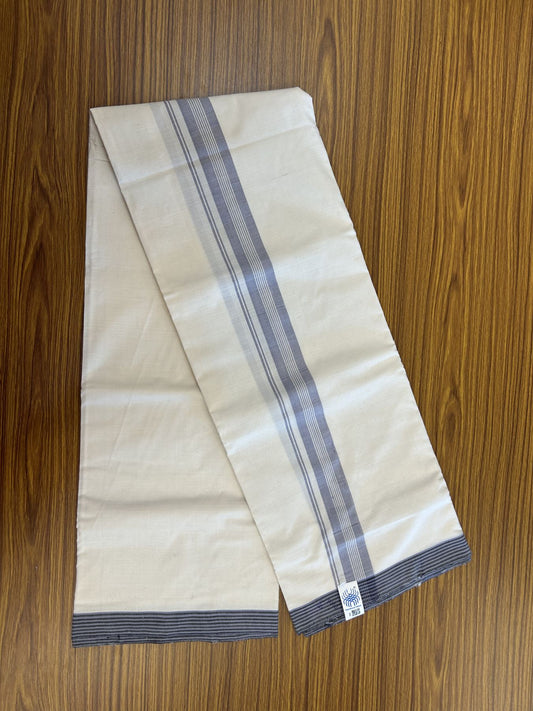 Kerala Handloom - Signature Kaitharikada - Government Sealed Hallmarked-100% Pure Cotton! (2/120sX100) Twisted Thread- Off White Double Mundu/Dhoti - 1.25 inch Black Shaded Striped Kara 4 mtr (8.5 muzham) - 19 KK5331 KAL