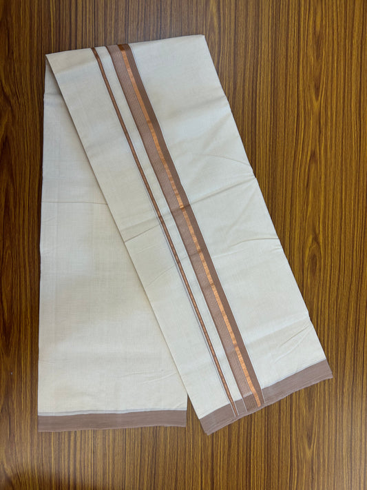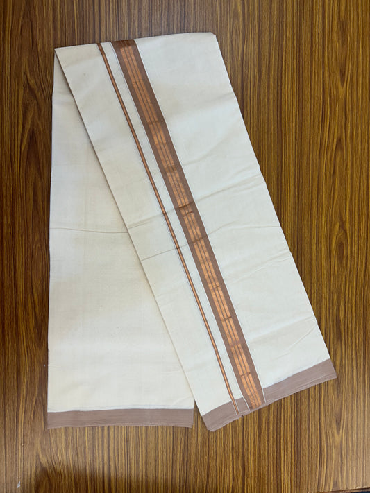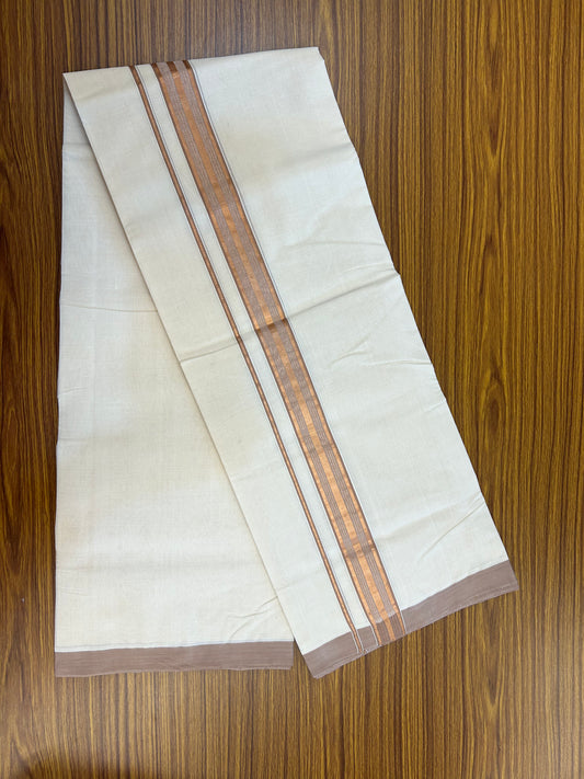 25% Discount ! KaithariKada Handloom Millpaav Balaramapuram - 100% Pure Cotton Off White (Unbleached) Double Mundu/Dothi - 80x90 - 1.75 inch Copper Kasav Stripes Kara 4 Mtr (8.5 Muzham) - 28 KK5328 RAM