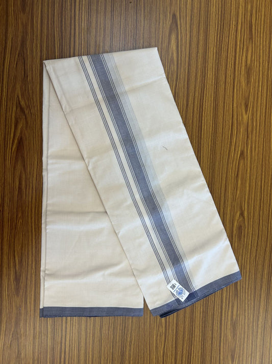 Kerala Handloom - Signature Kaitharikada - Government Sealed Hallmarked-100% Pure Cotton! (2/120X2/160) Twisted Thread- Off White Double Mundu/Dhoti - 1.25 inch Ash Grey Striped Kara 3.80 m (8 muzham) - 2 KK5331 KAL