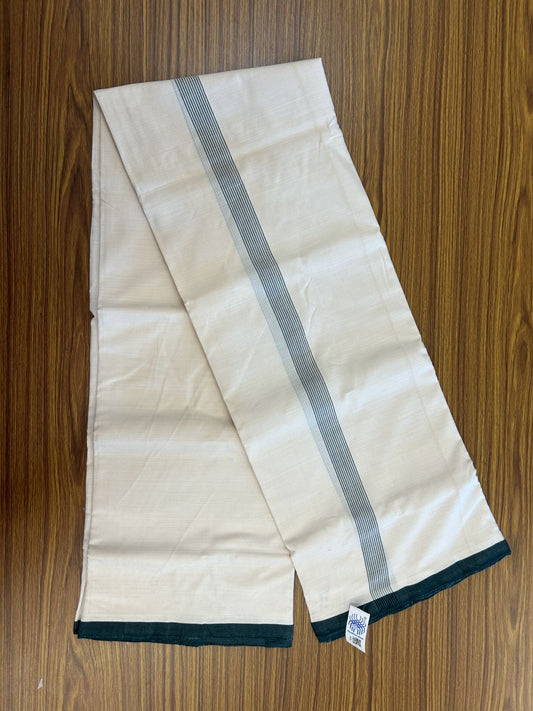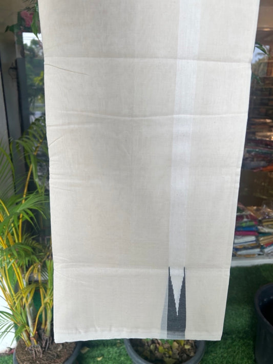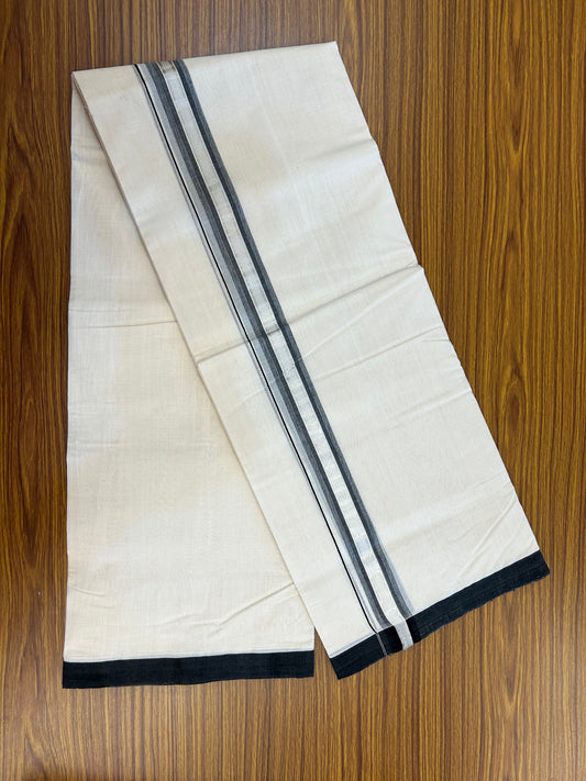 25% Discount ! KaithariKada Handloom Millpaav Balaramapuram - 100% Pure Cotton Off White (Unbleached) Double Mundu/Dothi - 80x90 - 1.5 inch Silver Kasav & Black Striped Kara 4 Meters (8.5 Muzham) - 9 KK5328 RAM
