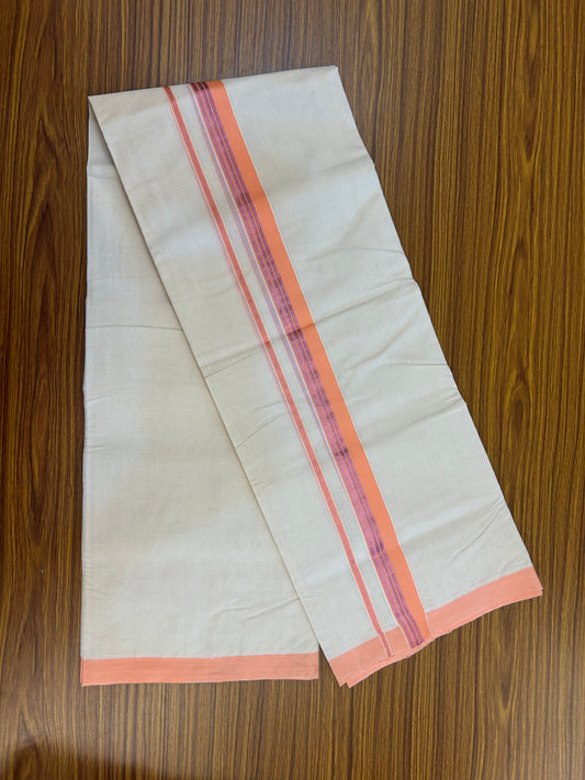 25% Discount ! KaithariKada Handloom Millpaav Balaramapuram - 100% Pure Cotton Off White (Unbleached) Double Mundu/Dothi - 80x90 - 1.5 inch Rose Pink Kasav & Peach Striped Kara 4 Meters (8.5 Muzham) - 11 KK5328 RAM