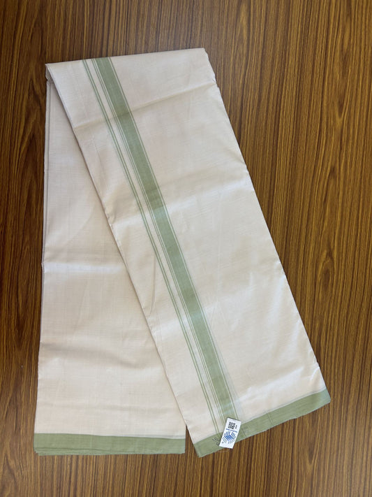 Kerala Handloom - Signature Kaitharikada - Government Sealed Hallmarked-100% Pure Cotton! (2/120X2/160) Twisted Thread- Off White Double Mundu/Dhoti - 1 inch Light Green Striped Kara 4 mtr (8.5 muzham) - 3 KK5331 KAL