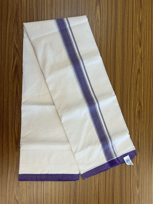 Kerala Handloom - Signature Kaitharikada - Government Sealed Hallmarked-100% Pure Cotton! (2/120X2/160) Twisted Thread- Off White Double Mundu/Dhoti - 1.5 inch Violet Striped Kara 4 mtr (8.5 muzham) - 5 KK5331 KAL