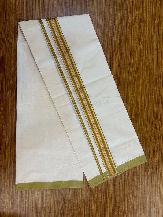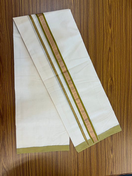 25% Discount ! KaithariKada Handloom Millpaav Balaramapuram - 100% Pure Cotton Off White (Unbleached) Double Mundu/Dothi - 80x90 - 1.5 inch Gold Kasav & Olive Brown Striped Kara 4 Mtr (8.5 Muzham) - 24 KK5328 RAM
