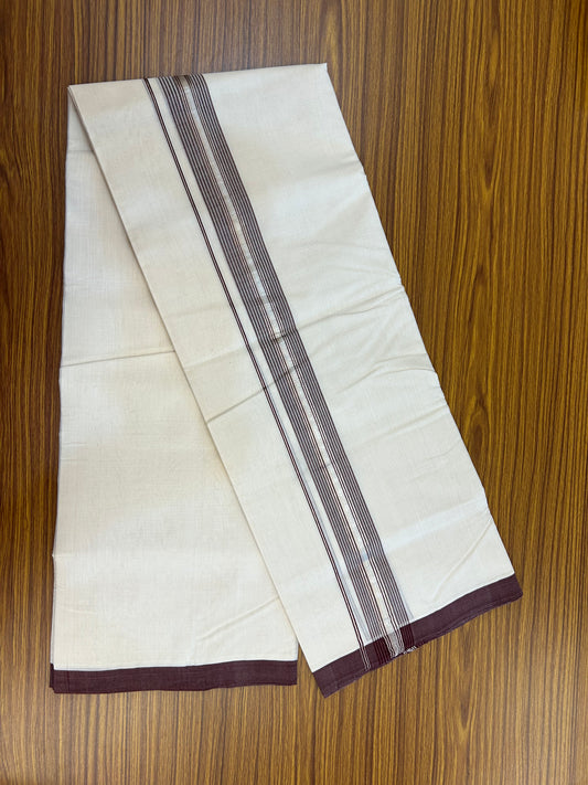 25% Discount ! KaithariKada Handloom Millpaav Balaramapuram - 100% Pure Cotton Off White (Unbleached) Double Mundu/Dothi - 80x90 - 1.75 inch Silver Kasav & Dark Brown Striped Kara 4 Meters (8.5 Muzham) - 7 KK5328 RAM