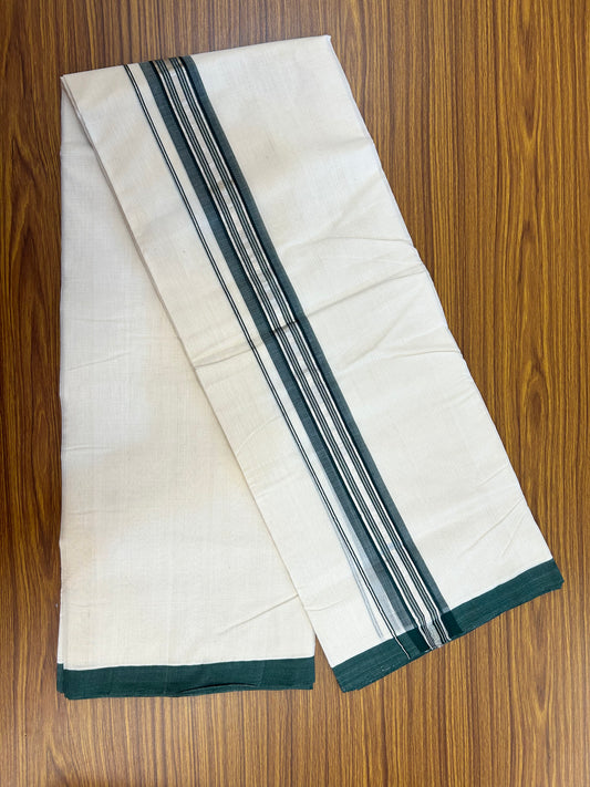 25% Discount ! KaithariKada Handloom Millpaav Balaramapuram - 100% Pure Cotton Off White (Unbleached) Double Mundu/Dothi - 80x90 - 2 inch Silver Kasav & Green Striped Kara 4 Meters (8.5 Muzham) - 8 KK5328 RAM