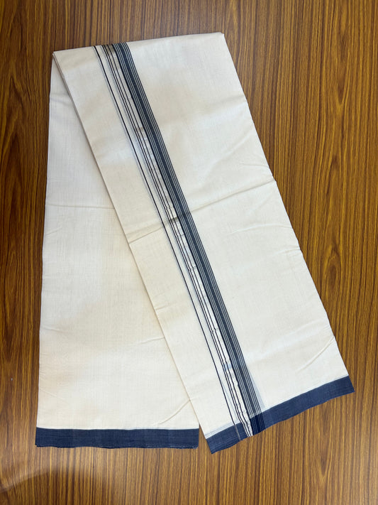 25% Discount ! KaithariKada Handloom Millpaav Balaramapuram - 100% Pure Cotton Off White (Unbleached) Double Mundu/Dothi - 80x90 - 1.5 inch Gold Kasav & Navy Blue Shaded Striped Kara 3.60 Mtr (8 Muzham) - 20 KK5328 RAM