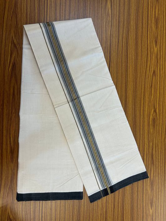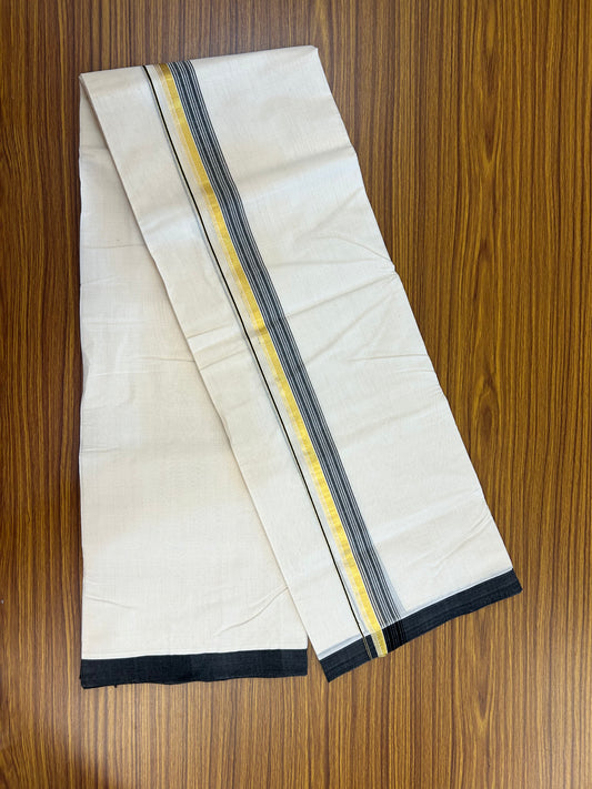 25% Discount ! KaithariKada Handloom Millpaav Balaramapuram - 100% Pure Cotton Off White (Unbleached) Double Mundu/Dothi - 80x90 - 1.5 inch Gold Kasav & Black Shaded Striped Kara 3.60 Mtr (8 Muzham) - 16 KK5328 RAM