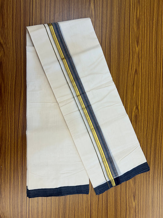 25% Discount ! KaithariKada Handloom Millpaav Balaramapuram - 100% Pure Cotton Off White (Unbleached) Double Mundu/Dothi - 80x90 - 1.5 inch Gold Kasav & Navy Blue Shaded Striped Kara 3.60 Mtr (8 Muzham) - 19 KK5328 RAM