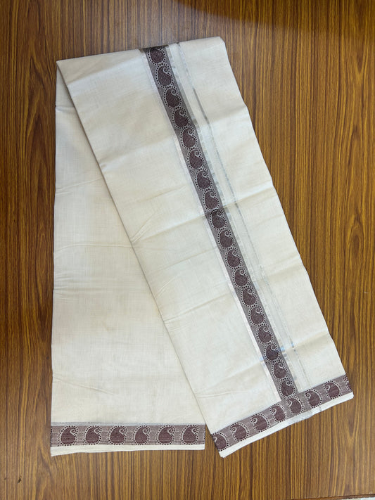 25% Discount ! KaithariKada Handloom Unakkupaav Kerala Handloom - 100% Pure Cotton Off White (Unbleached) Double Mundu/Dhoti - 100x80 - 1.75 Inch Silver kasav & Coffee Brown Jaquard Design Kara 4 mtr (8.5 muzham) - 23 KK5352 ABH