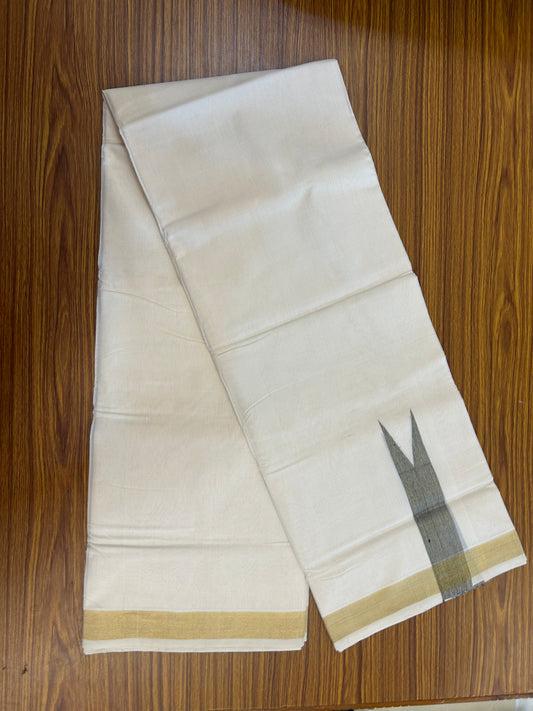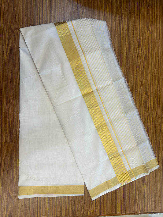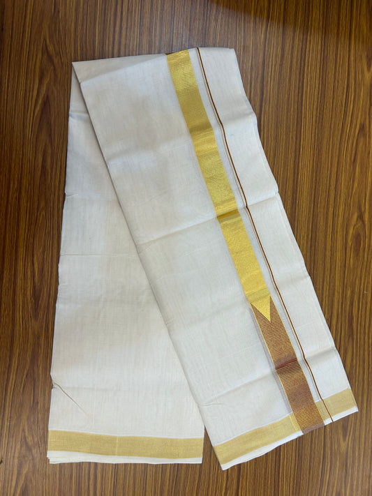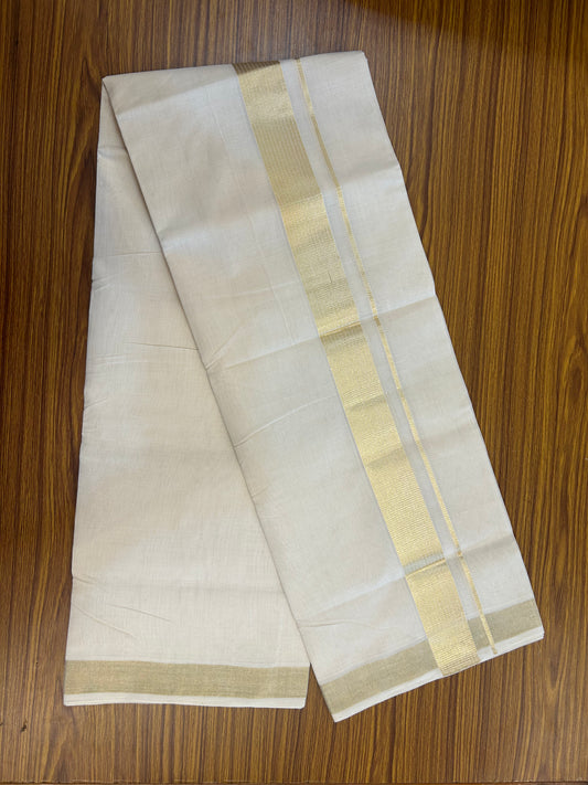 25% Discount ! KaithariKada Handloom Unakkupaav Kerala Handloom - 100% Pure Cotton Off White (Unbleached) Double Mundu/Dhoti - 100x80 - 7 Inch Gold kasav Side Stripes Kara 4 mtr (8.5 muzham) - 25 KK5352 ABH