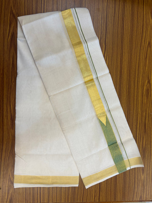 25% Discount ! KaithariKada Handloom Unakkupaav Kerala Handloom - 100% Pure Cotton Off White - (Unbleached) Double Mundu/Dhoti - 100x80 - 1.5 Inch Gold Kasav & Green Chutty kara 4 mtr( 8.5 muzham) - 28 KK5352 ABH