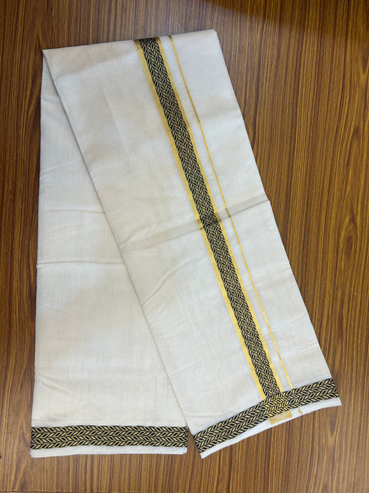 25% Discount ! KaithariKada Handloom Unakkupaav Kerala Handloom - 100% Pure Cotton Off White (Unbleached) Double Mundu/Dhoti - 100x80 - 1.5 Inch Gold kasav & Black Jaquard Design Kara 4 mtr (8.5 muzham) - 22 KK5352 ABH