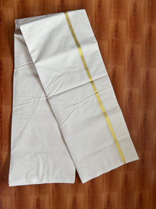 20% Discount! KaithariKada Balaramapuram 100% Cotton Double Off white Mundu/Dhoti- 100x100 - 0.5 inch Gold Kasav Kara - 4 mtr (8.5 muzham) - 16 KK5381 ASH