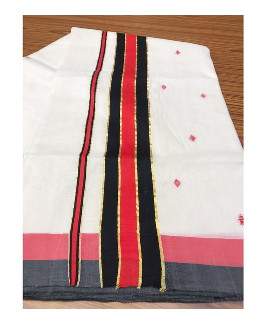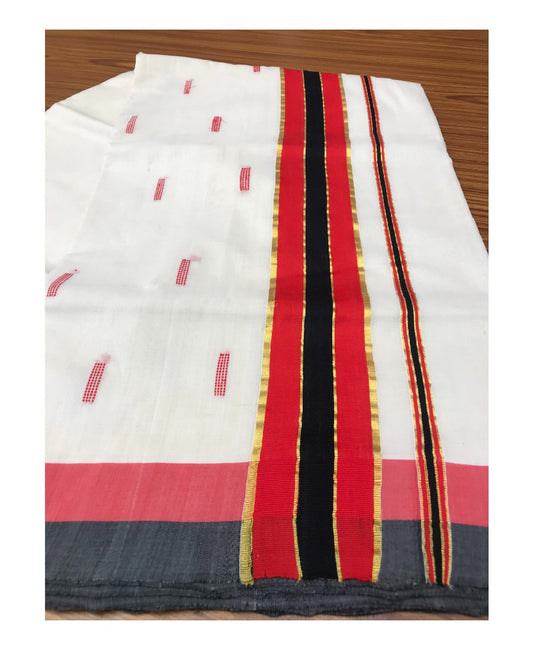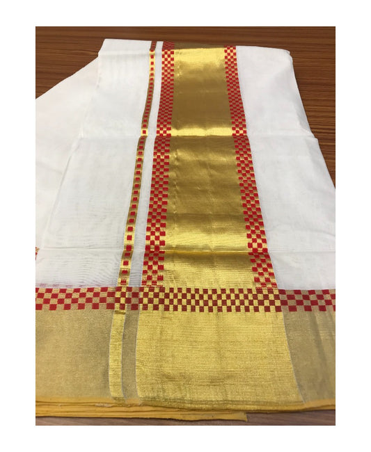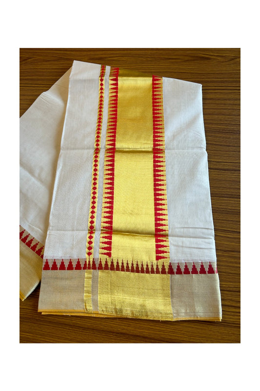 KaithariKada HANDLOOM UNAKKUPAAV Balaramapuram Kerala Saree for Women - 100% PURE Cotton - 6.5 inch Red & Gold Temple Design Kasavu Kara - 1.