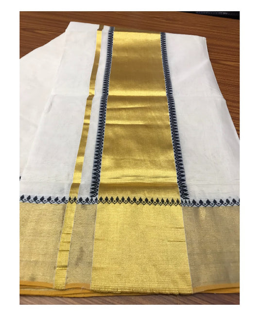 KaithariKada HANDLOOM MILPAAV Balaramapuram Kerala Saree for Women- 100% PURE KASAVU - 24 Inch Gold Kasavu DESIGN WITH KUNJALAM Kara-11.