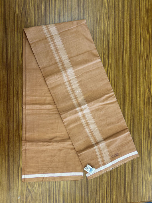 Kerala Handloom - Signature Kaitharikada - Government Sealed Hallmarked - 100% Pure Cotton 2/60x40s Thread - Single Mundu / Dhoti - 1 inch White Shaded Striped Kara with Kavi colour Body - 30 KK8046 KAL