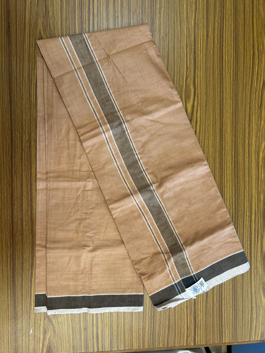 Kerala Handloom - Signature Kaitharikada - Government Sealed Hallmarked - 100% Pure Cotton 2/60x40s Thread - Single Mundu / Dhoti - 1.5 inch Black Shaded Striped Kara with Kavi colour Body - 29 KK8046 KAL