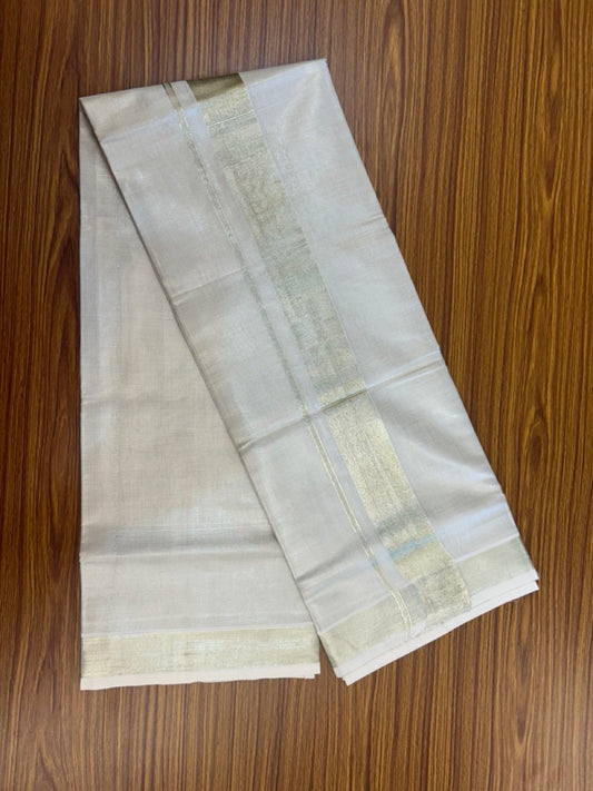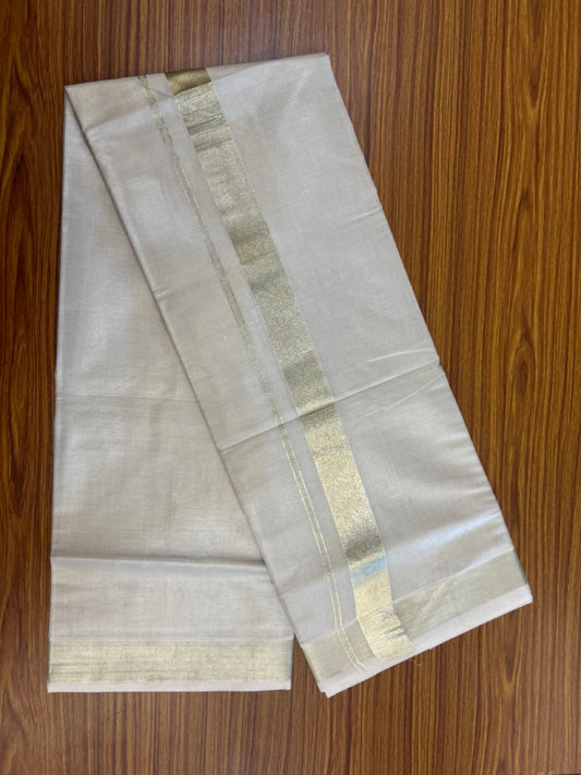 20% Discount! KaithariKada Balaramapuram Cotton Mix (60)s - Light Gold Kasav Tissue Double Dhoti/Mund 2 inch Light Gold kara 4 mtr (8.5 muzham) - 10 KK5292 GAN
