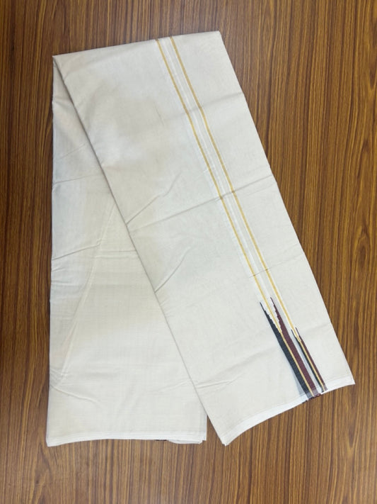Dmk Veshti - 20% Discount! KaithariKada 100% Cotton off white Double - (Unbleached) Mundu/Dhoti - 100X100 - 0.75 inch Puliyilakkara Gold Kasav Black & Maroon Chutty kara - 5 KK5300 ASH